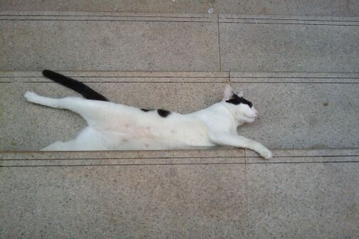 cos she's always snoozing between shoes and slippers (2 different racks. I think she would sleep outside my flat if I have a shoe rack there). you can also find her splayed out in the middle of a flight of stairs relaxing.